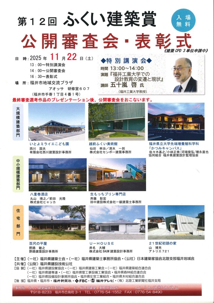 2025/11/22(土)に第12回ふくい建築賞の公開審査会・表彰式がありました。