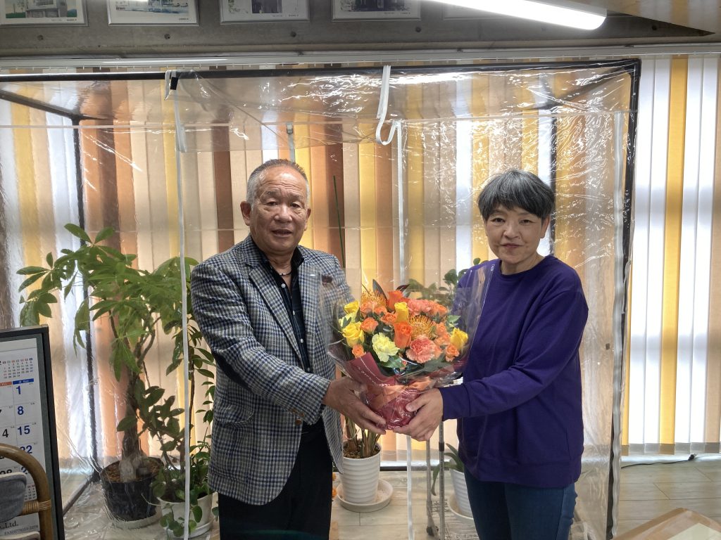 所長への御祝は毎年、従業員全員から贈り物をしています。